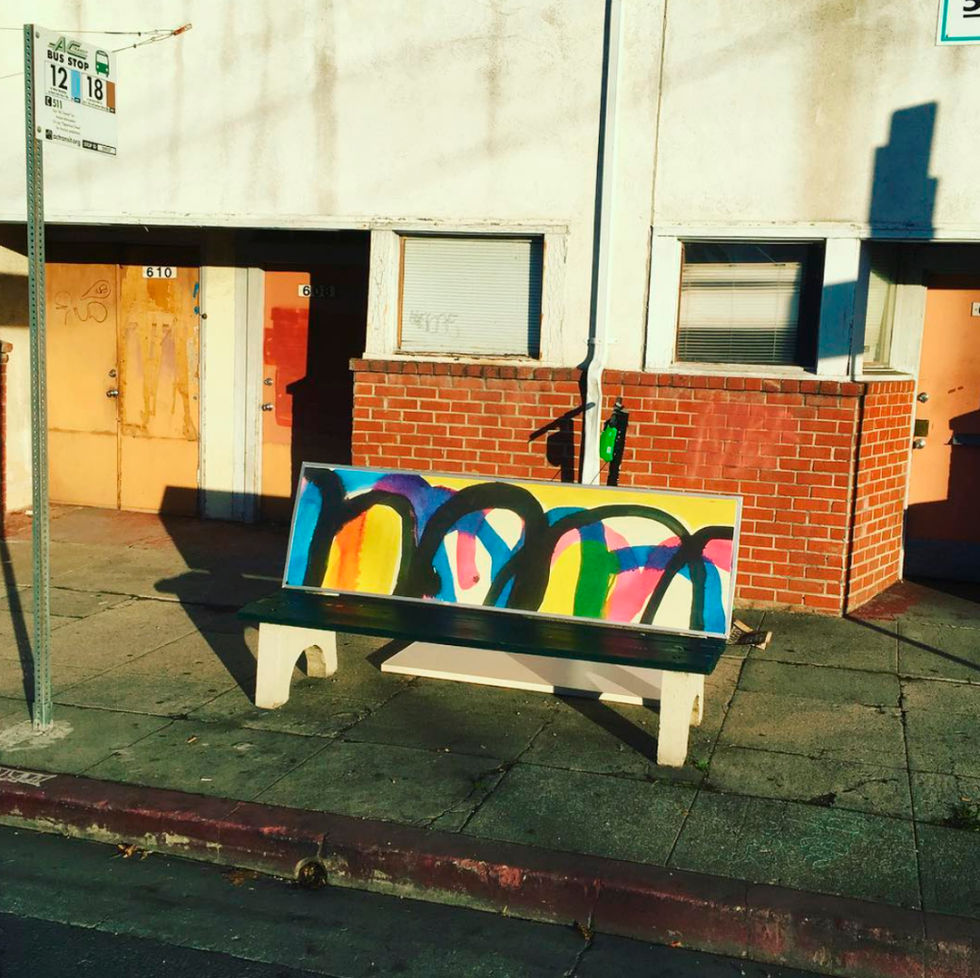 I love the project Bench Projects celebrating diverse North Oakland artists by showcasing their artwork on AC Transit bus stops in Oakland. I started the project after seeing "Advertise Here" advertisements on North Oakland neighborhood benches and thinking - we can do better. For benches that never seem to receive ads, I commissioned local artists to activate these public spaces with their work. Over four years, the local community has championed the project and we've shown work by 19 Oakland artists to date.